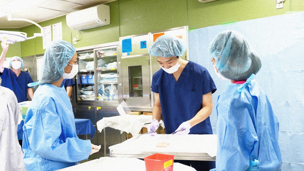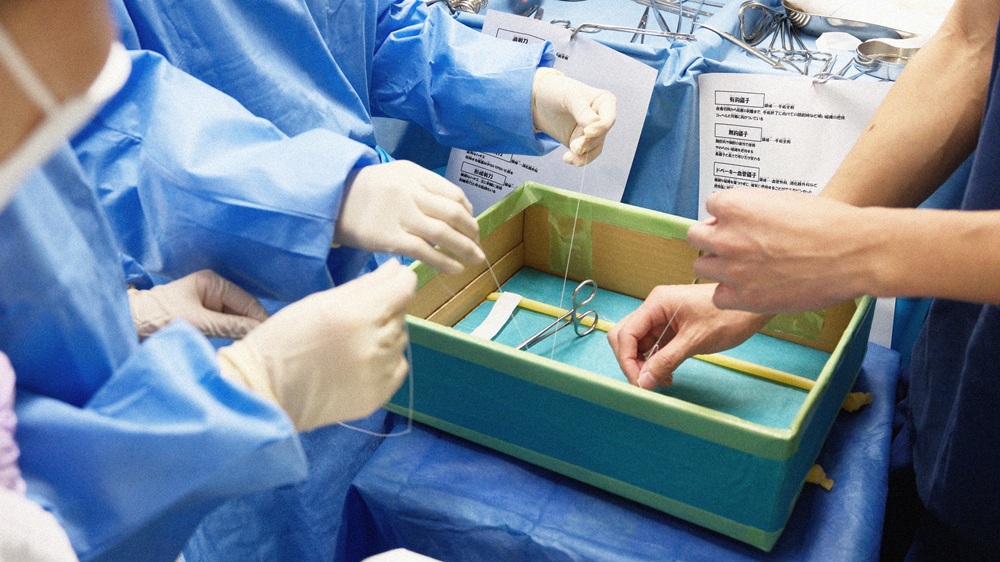 真剣な眼差しで糸を通し、医師さながらに針を扱う姿にスタッフも思わず拍手!