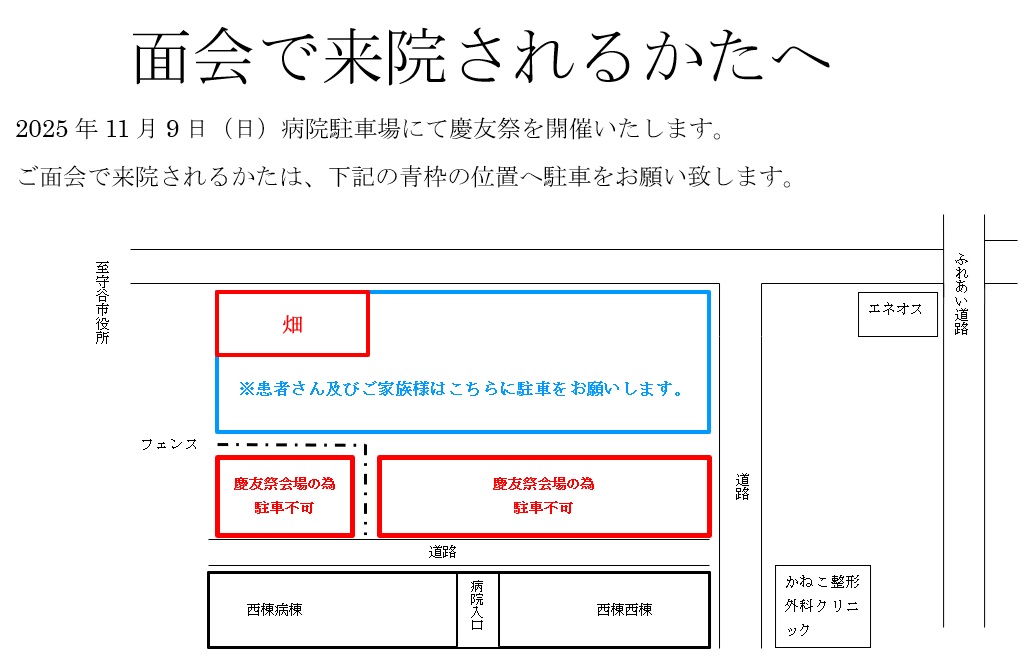 ※病院内では飲食を禁止しております。飲食は駐車場内所定の食事スペースでお願いします。